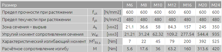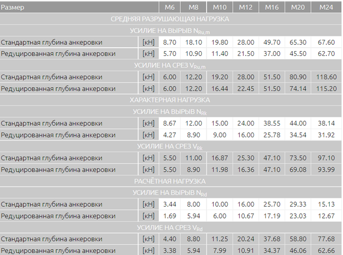 Установочные размеры Механические свойства Данные для единичного анкерного крепления