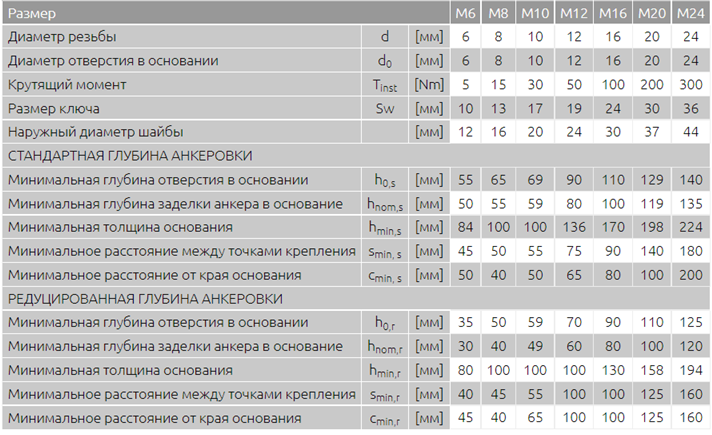 Маркировка глубины анкеровки на анкере облегчает процесс монтажа