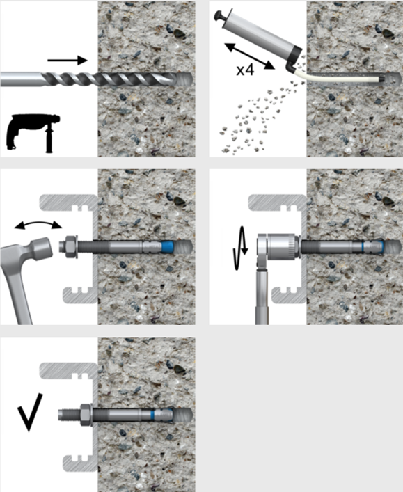 Конструкция анкера R-HPTII способствует сверлению и монтажу непосредственно через закрепляемый элемент, что позволяет сократить усилия и время при выполнении монтажных работ
